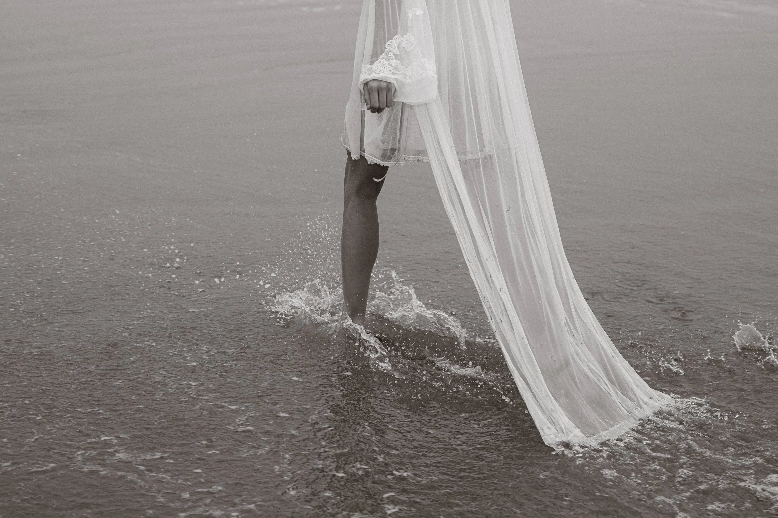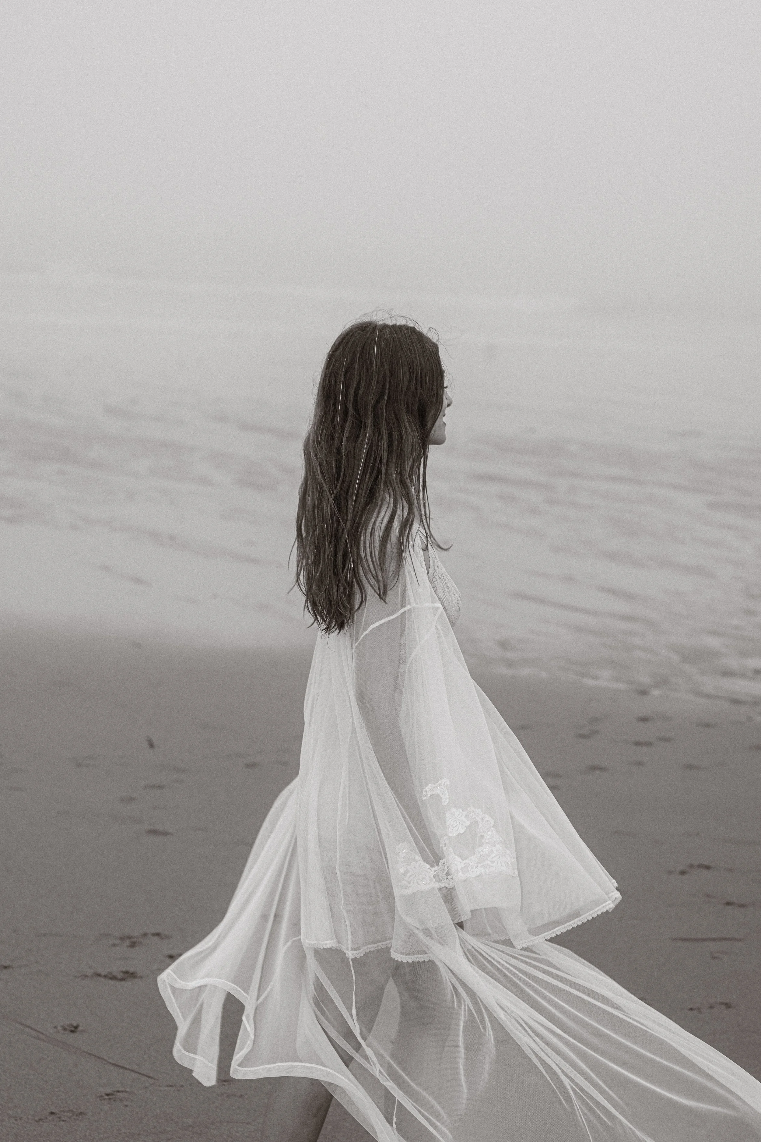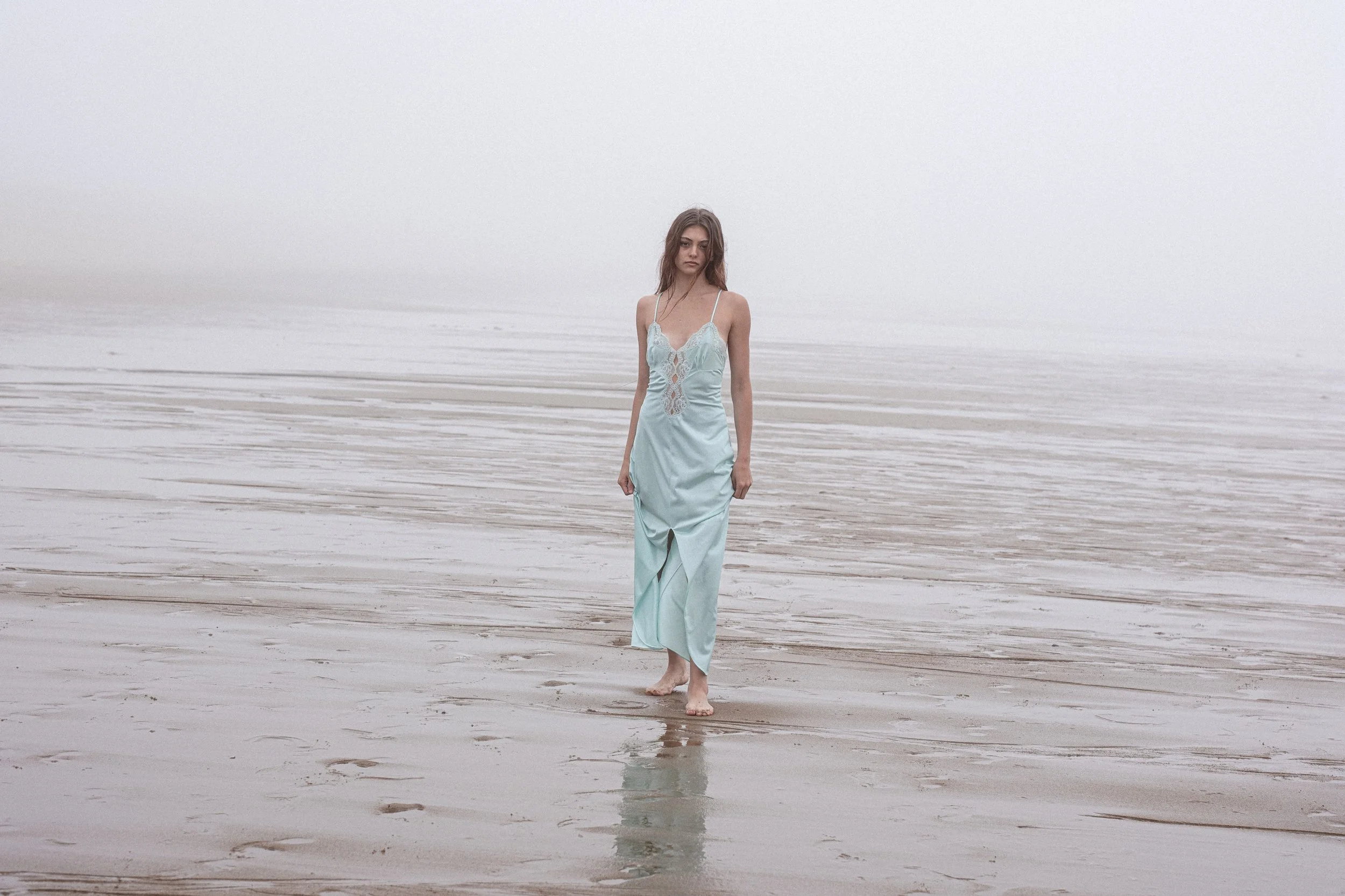 The Fall 2025 slip dress shoot uses incoming fog and outgoing tide to showcase the femme wonderland of Coco’s collection.